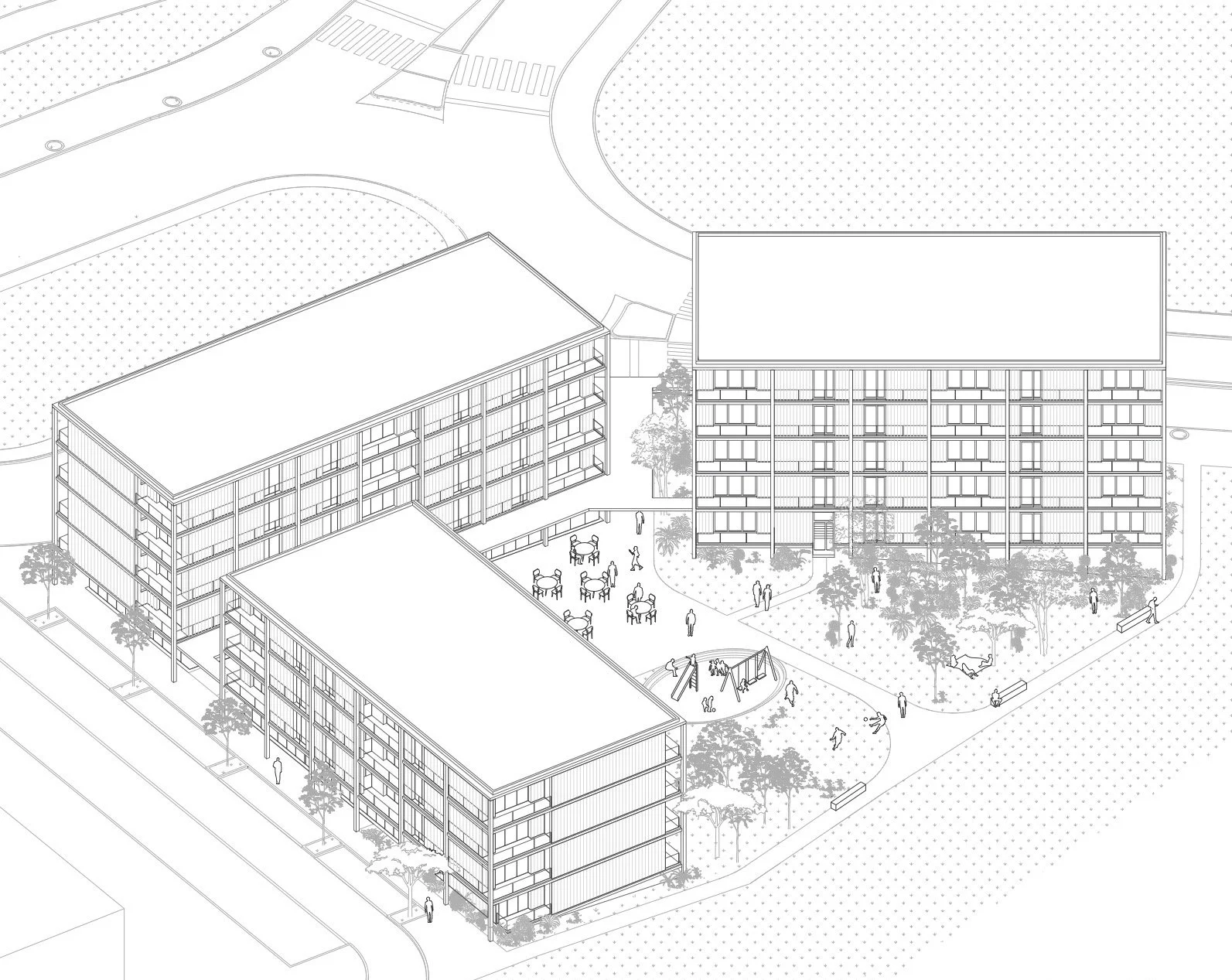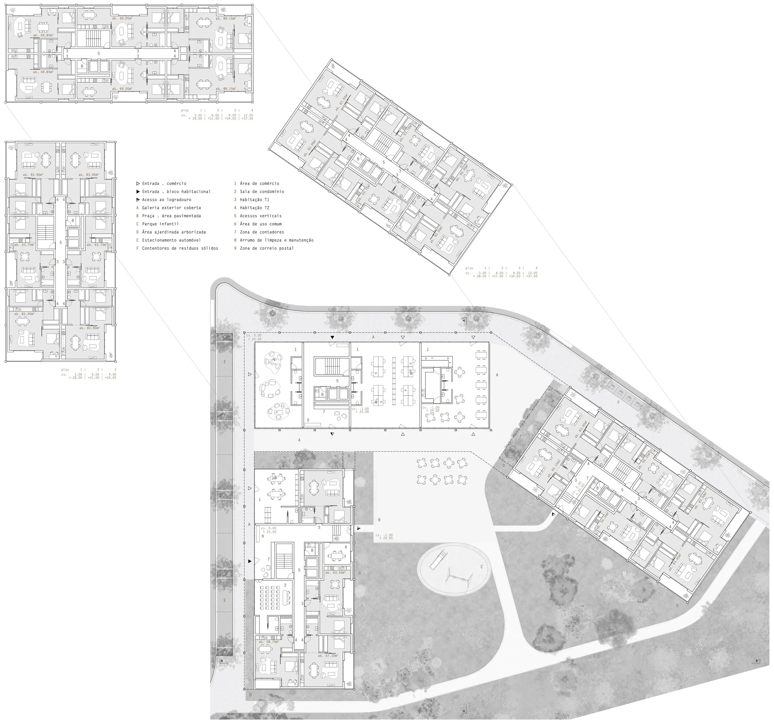 Projecto em colaboração os Arqs. João Amorim e Constanza Frigolett para Conjunto Habitacional na Bela Vista, Setúbal.